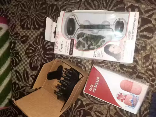 Pamper yourself with the 4-in-1 Facial & Scalp Massager Set — a complete beauty and relaxation kit designed to refresh your skin and soothe your senses. Made with natural jade stone and high-quality materials, this set promotes healthy skin, reduces tension, and supports hair growth.